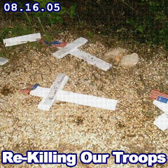 Well, I'm done with my crappy dotcom "permatemp" job and have flailed thru the first two of six "tests" I have to pass to get to lock drunks up at the King county jail. And, I talked to Washington state U.I. today. Oh, fuck them! That agency is tighter than my brother (who used to use fastfood coupons at lunch when he was making $200,000 a year). I don't know if it was an admin policy change a couple years ago in lue of the 20,000+ people who were laid off by Boeing, er what, but unemployment insurance is almost impossible to get in Washington. But all of this seemed small and unimportant when I read the latest on Cindy Sheehan: Image swiped courtesy of the Randi Rhodes Show. If you just climbed outta that locked basement, Sheehan is the mother of a California soldier who was killed in Iraq. She's camped out in Texas across from Casa De Dubya because she wants to talk to Presidente Pubicbush and ask him personally "why" her kid had to die and "was it worth it?" Bush held an extra-short press conference from his faux farm in Crawford and said he doesn't have time to meet with her. Dubya has a personal fitness schedule to keep. I can relate. Recently, I started one and my ass is tired. Being unemployed (or on vacation) is work! Last night when I crawled outta my 105-degree Bikram yoga class, I got home and found operating the TV remote was just too much so I went to bed. Just prior to crashing for the night, I was munching on some almonds and one went down the wrong way, I started coughing, making that Bill-the-Cat ACK noise -- I nearly died. Fortunately, Dubyah has neighbors who care about his fitness schedule and understand how tiring vacationing can be. They showed their true colors just the other night ... Faux News ... ... and Salon story God Bless, America, errr ... I mean, Zig Heil !!! -- Mz M. P.S. Don't ya love how the Fox News story describes her as a "divorce"? What could be more Un-Christian than a divorce?! I know the Mormons in my home town would agree because my own Mother was a divorce and she read the horoscopes in the paper, surely a two-fold sign of Satan.
